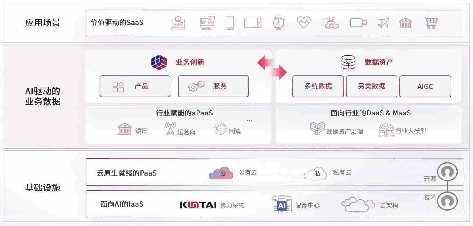 数字时代,,,围绕企业数字化转型的关键要素,,,,星欧娱乐数码开创性的提出数云融合战略和技术体系框架,,,,着力在云原生、、、、数字原生、、AI原生和信创产业上架构产品和服务能力,,,,为处在不同数字化转型阶段的快消零售、、、汽车、、金融、、、医疗、、政企、、、、教育、、、运营商等行业客户提供泛在的敏捷IT能力和融合的数据驱动能力,,,,构建跨界融合创新的数字业务场景和新业务模式,,助力企业级客户建立面向未来的核心能力和竞争优势,,全面推动社会的数字化、、、智能化转型升级。。。
